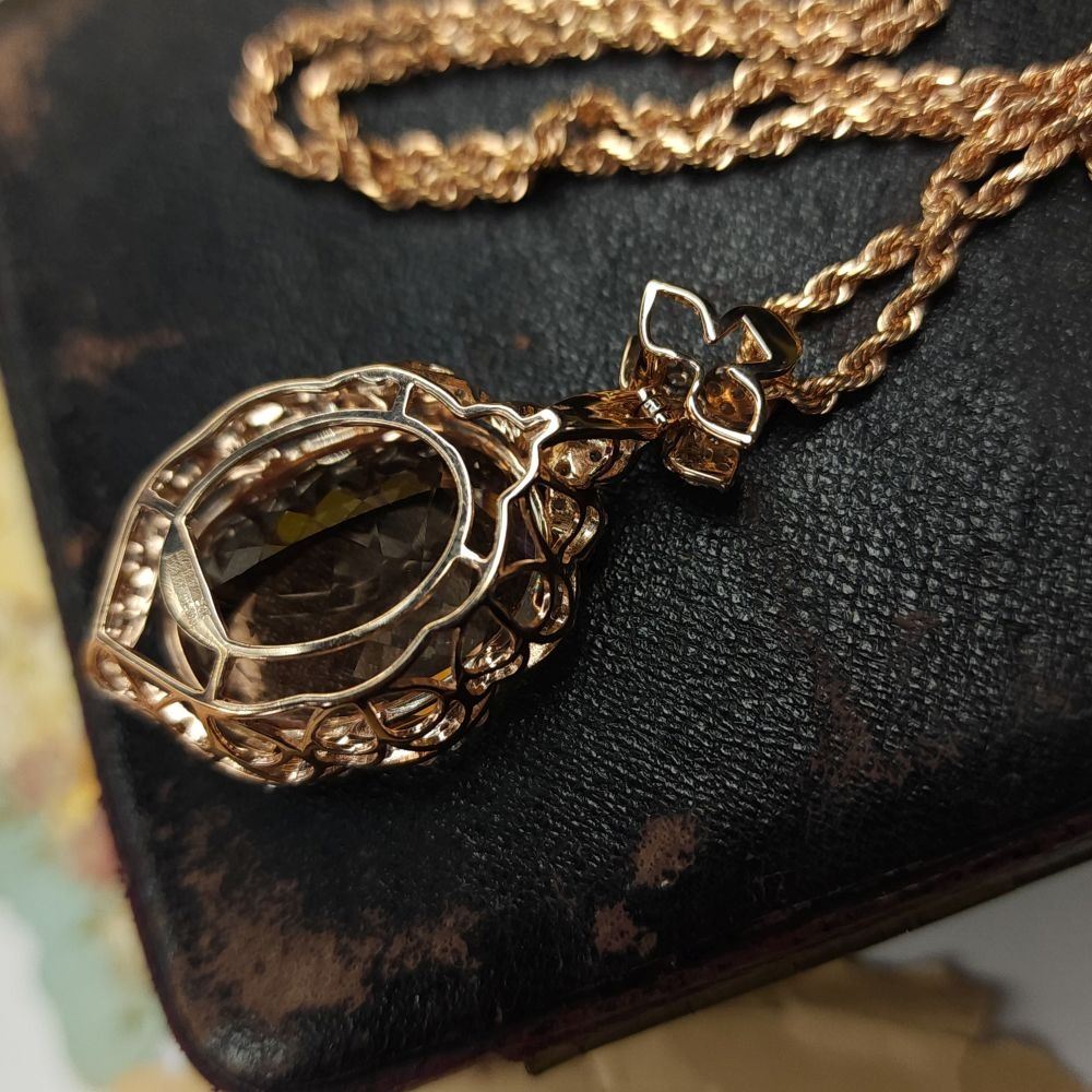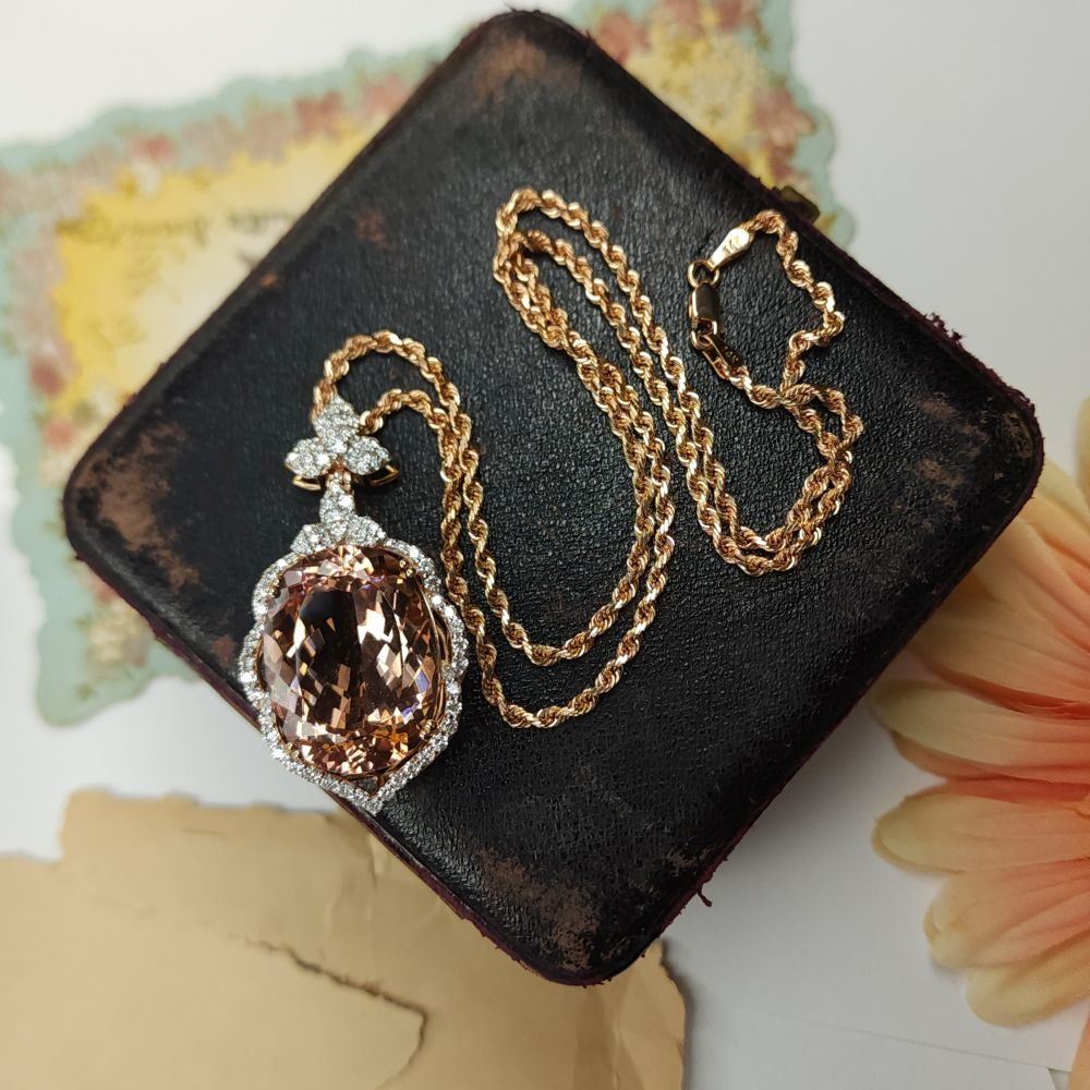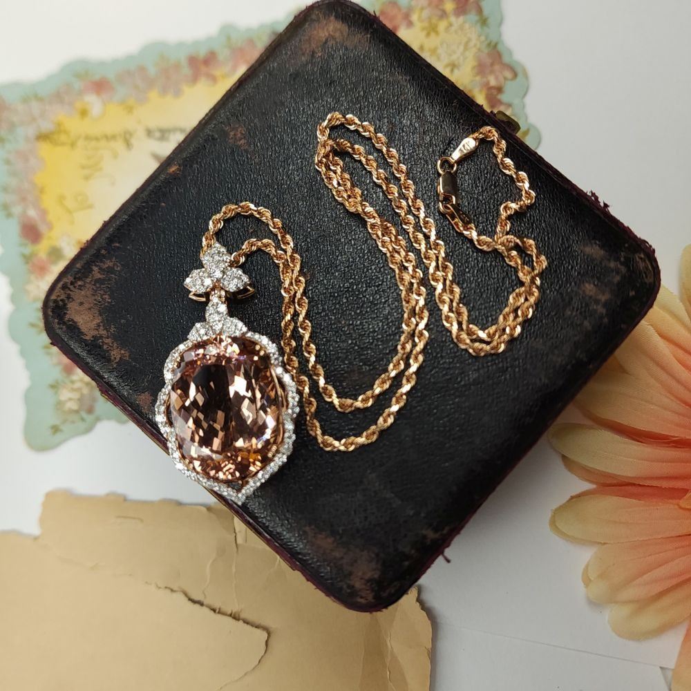 TITLE DESCRIPTION: Morganite Pendant with Diamond Halo & amp; Floral Bail