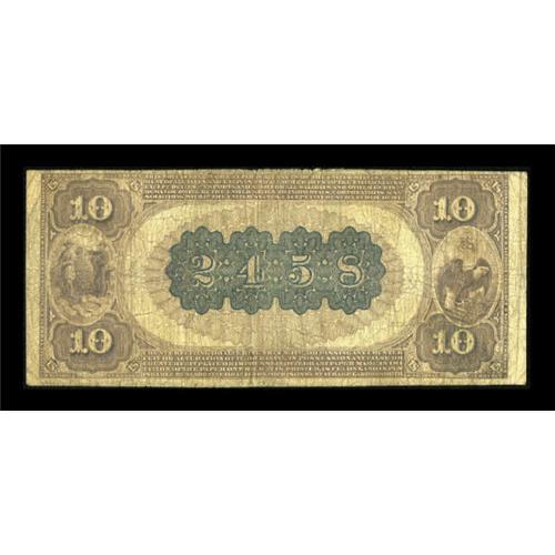 <B>Morgantown, WV</B></I> - $10 1882 Brown Back Fr. 490 <B>The Second NB</B></I> Ch. # (S)2458<BR> The census from here includes nine large size notes. This <B>Very Good+</B></I> example, listed in the census as a Fine, is the sole surviving Brown Back of either of the two denominations issued from this bank. The delicate officers' black ink signatures are still readily legible and the overall appearance is very presentable for a note with some experience. Brown Backs from West Virginia are an especially elusive type with a few more than one hundred known in total from all banks.<BR><BR><BR><b>Shipping:</b> Coins & Currency (<a target="_blank" href="http://www.heritageauctions.com/common/shipping.php">view shipping information</a>)