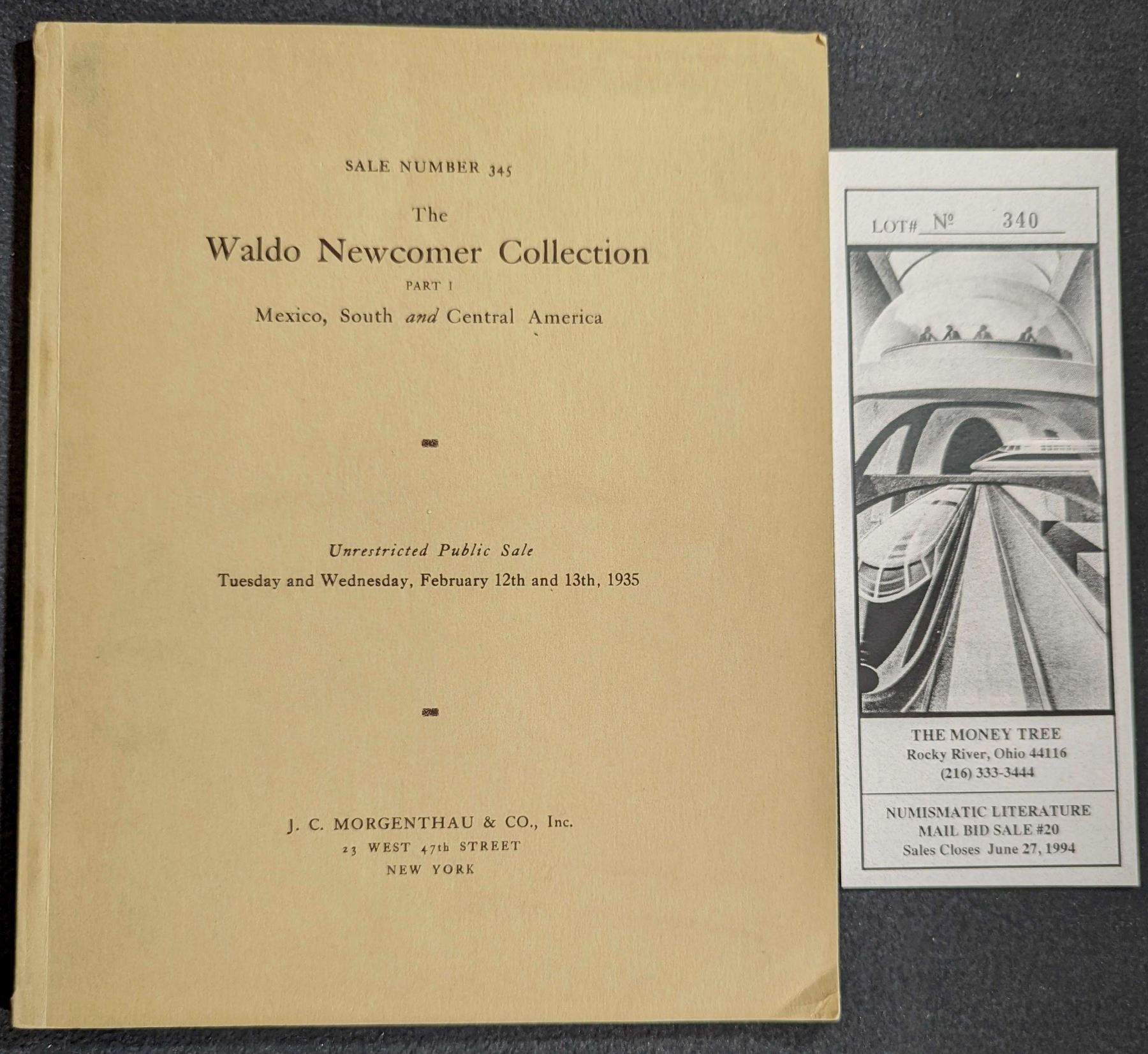 Morgenthau, J.C. & Co., Inc. THE WALDO NEWCOMER COLLECTION PART I. MEXICO, SOUTH AND CENTRAL AMERICA. February 12-13, 1935. 1-744 lots. 4to. This auction sale catalog includes numismatic material from Mexico, Central and South America from the Waldo Newcomer Collection. The sale is very strong in gold and silver coins from Colonial and Republic Mexico, and countries in Central and South America with many choice rarities. New York, original tan printed card covers, 12 b&w plates, 42-pages, ex Money Tree Sale No. 20 lot 340, Gengerke 345[442]. Lot weight: 0 lbs 15oz. Subject(s): Mexican, Latin American, United States, World Coinage.