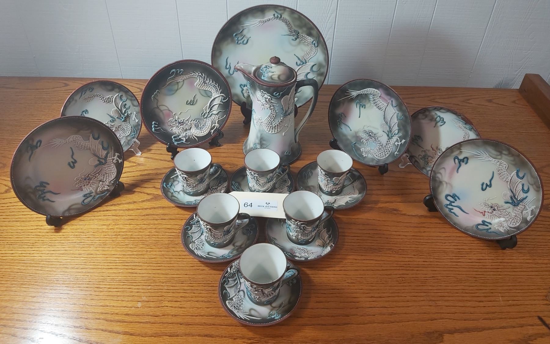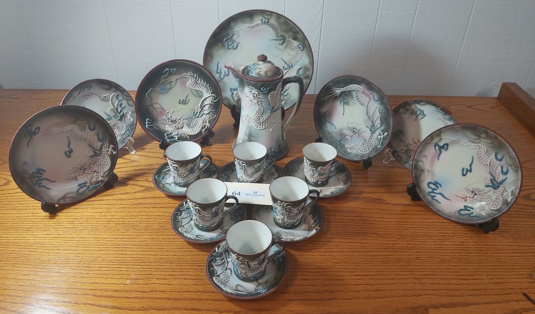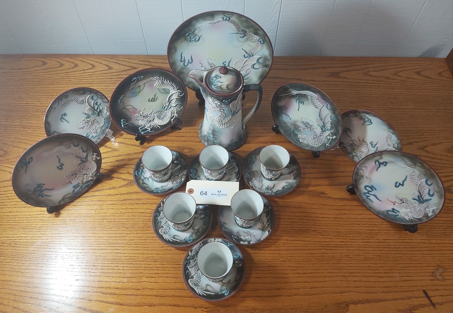 Moriage Marriage Dragonware Set With Large 10" Inch Nippon Plate and Hand Painted Japan Pieces