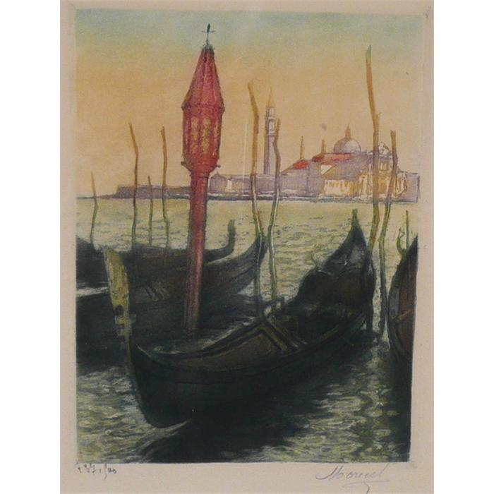 Moriel, Colored Print Venice Scene Signed lower right 7 1/2" x 6 1/2"