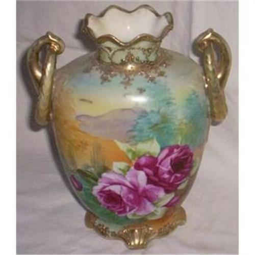 <tr><td>Title:Morimura Nippon Hand Painted Urn Vase Roses</td></tr>
