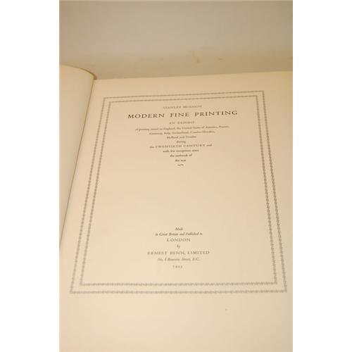 Morison, Stanley . Modern Fine Printing. London: Ernest Benn Limited, 1925. First Edition. Elephant Folio - over 15" - 23" tall. Hard Cover. Ex-Library. Very Good Condition. LIMITED #452/650 copies in the English language. An Exhibit of printing issued in England, The United States of America, France, Germany, Italy, Switzerland, Czecho-Slovakia, Holland and Sweden during the Twentieth Century, and with few exceptions, since the outbreak of the war