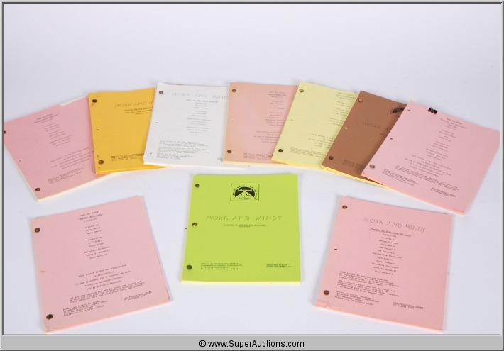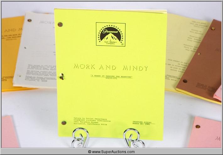 "Mork & Mindy" Scripts / Paramount Pictures Corporation ~ "Putting the Ork Back in Mork" / Part Two / "The Eggs-Orcist" #60233-721 / Shooting Script / October 15, 1980 ~ "Mork and the Family Reunion" / #60233-064 / Final Draft / March 17, 1981 ~ "I Heard it Through The Morkvine" / #60233-071 / Shooting Script / March 26, 1981 ~ "Mork the Gullible" / #60231-009 / Final Draft / October 17, 1978 ~ "Mork's Greatest Hit" / #60231-011 / Shooting Script / November 1, 1978 ~ "Mork's Mixed Emotions" / #60231-019 / Pre-Production Draft / January 11, 1979 ~ "Mork vs. The Necrotons" / #60232-725 / Pre-Production Draft / November 5, 1979 ~ "The Way Mork Were" / #60232- 047 / Pre-Production Draft / December 17, 1979 ~ "There's No Time Like The Past" / #60233-057 / Pre-Production Draft / August 1, 1980 ~ "I Hear Me Knockin', Buy I Can't Get In" / Pre-Production Draft / August 07, 1980