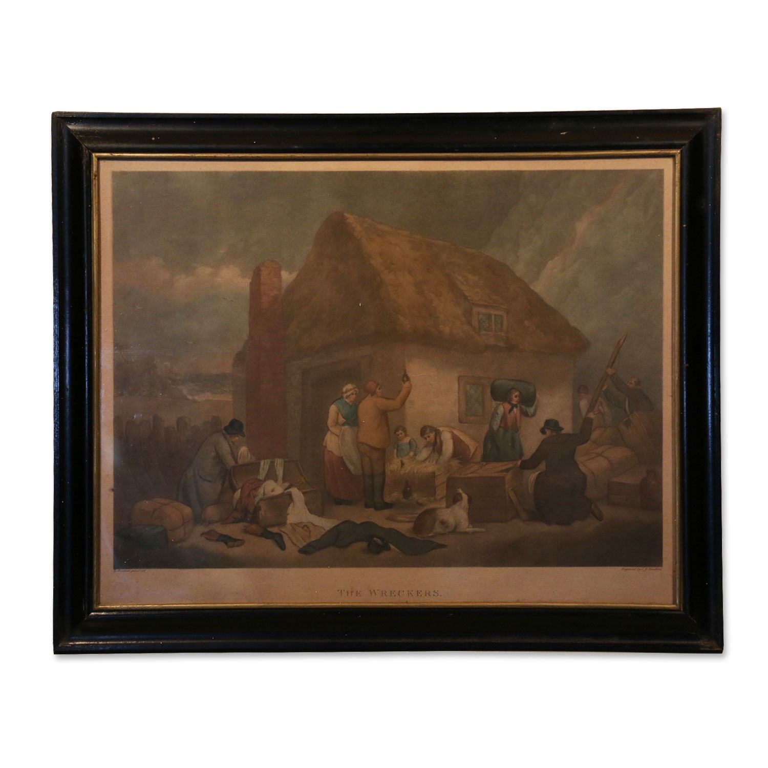 Titled, "The Wreckers" recto. Engraving by C.J Tomkins. 23.5" x 18.5" Note: Original painting from 1792 by George Morland.