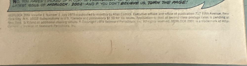 Morlock 2001 and the Midnight Men #3 (Atlas Comics, 1975) Comic Book