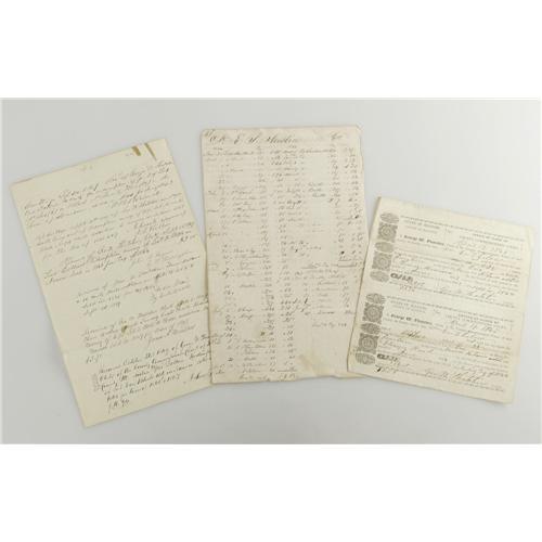 <B>(Mormons) An important collection of approximately sixty printed and manuscript documents from Hancock County, Illinois and in particular, Carthage and Nauvoo -- where the Mormons, under the leadership of Joseph Smith, settled in 1839-1846.</B></I><BR><BR> In 1838, Joseph Smith and several thousand Mormons fled Missouri by order of the Governor, and migrated to parts of Illinois and Iowa. Joseph Smith purchased swamp land from farmers and speculators on the banks of the Mississippi River, situated in between the towns of Carthage (county seat) and Quincy. By 1840, nearly 3,000 Mormons settled on this land tract, generally referred to as Commerce. Joseph Smith renamed the settlement Nauvoo ("beautiful" in Hebrew) and the Mormon migration continued en masse. The Mormons' fear of religious persecution prompted Joseph Smith to obtain a special charter for Nauvoo granting the city an independence likened to that of the State -- Joseph Smith served as head of the municipal system, legal system, city government and church. As such, he issued writs of habeas corpus that protected Nauvoo's citizenry from law and tax enforcement agents from other states; raised a militia that was independent of the State militia; and created a fiscal shelter for the Church and it's members that held no allegiance or obligations to the larger State. By 1844, Nauvoo's population soared to 10,000. It's liberal charter, growing commercial success, and river proximity made it a safe haven for various types of criminals. This, combined with anti-Mormon sentiment, and a general disdain for the untouchable (and questionable) business and political practices of Joseph Smith, fueled anger in the neighboring towns of Quincy and Carthage. At the same time, some Nauvoo Mormons were also questioning the morality of Smith's leadership, especially after he announced his intentions to run for President of the United States. The apostate collective published a dissenting newspaper, <I>The Nauvoo Expositor,</B></I> but only published one issue before Joseph Smith ordered its presses destroyed on June 11, 1844. Subsequently, Joseph Smith and his brother Hyrum were arrested. Smith was murdered by a mob while he was held in jail in Carthage on June 27, 1844. His death led to a succession crisis and schisms within the Mormon movement. Brigham Young was chosen to succeed Joseph Smith, and from 1846 through 1852, he led the migration of sixteen thousand Mormons from a hostile Illinois to Utah.<BR><BR> Of the sixty documents, roughly one third date from the period of Mormon settlement there. A small sampling of the material reveals two documents signed by early Mormon leader <B>Stephen Markham (1800-1878), partly-printed Document Signed</B></I> "<I>Stephen Markham</B></I>", one page, 8" x 12", Nauvoo, Illinois, July 8, 1846 selling land in Nauvoo to Leonard Schusler. The collection contains a similar D.S. also signed by Markham and his first wife <B>Hannah Markham</B></I> and filled-out in Markham's hand, one page, 8" x 12", Nauvoo, Illinois, April 1, 1842 in which they sell a lot in Nauvoo to Mormon elder <B>George W. Crouse.</B></I> Crouse was excommunicated from the Church on September 15, 1844 for "unchristian conduct". Interestingly enough the collection includes <B>George W. Crouse and Catherine Crouse,</B></I> D.S., 12" x 16" June 26, 1843, sale to Daniel Bailey for $200 for land in Nauvoo. Markham had been in the Carthage jail with Smith and others but was allowed to leave to obtain medicine. Upon his return he was confronted by a mob and forced away at bayonet point. Also of interest is a <B>manuscript D.S. endorsed by Carthage County jailer, George W. Stigall,</B></I> Nauvoo, Illinois, June 14, 1845. Stigall was the jailer for Carthage County at the time that Joseph and Hyrum Smith were assassinated. The collection also includes numerous documents listing homes in Nauvoo that had been sold off for non-payment of tax, many of which appear to have been abandoned (or just delinquent) in the period between 1843 and 1847 when the Mormon's began their journey west to establish Deseret in modern-day Utah. A tremendous collection worthy of further research. Overall condition Very Good. An important, early Mormon archive. From the Henry E. Luhrs Collection.