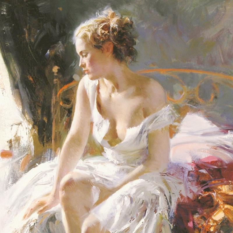 "Morning Breeze" is a limited edition giclee on canvas by Pino (1931-2010), numbered and hand signed by the artist. Includes Certificate of Authenticity. Measures approx. 12" x 16" (image).