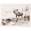 "Morning Mist" by Carl Rungius 1925 etching & dry point 6.25 x 8.5