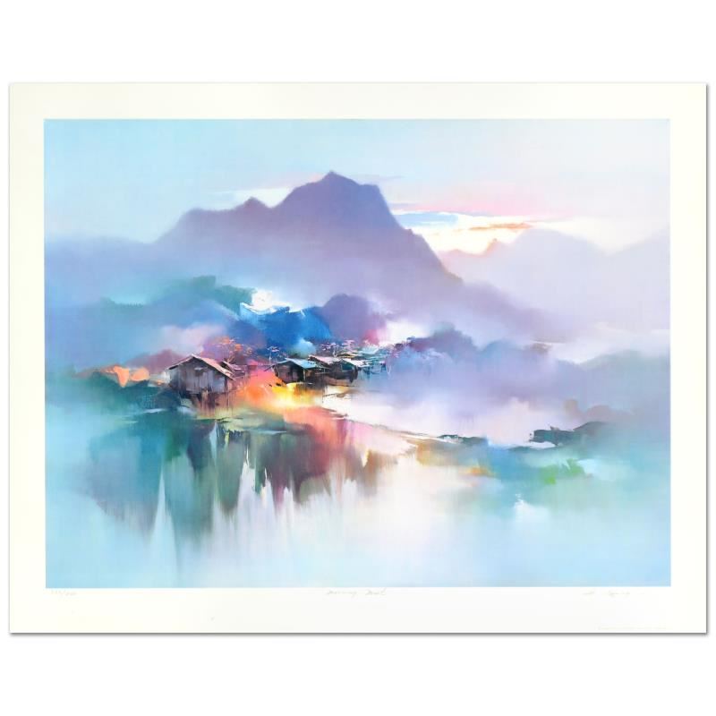 "Morning Mist" is a limited edition giclee on paper by H. Leung, numbered and hand signed by the artist. Includes Letter of Authenticity. Measures approx. 35" x 26" (image).