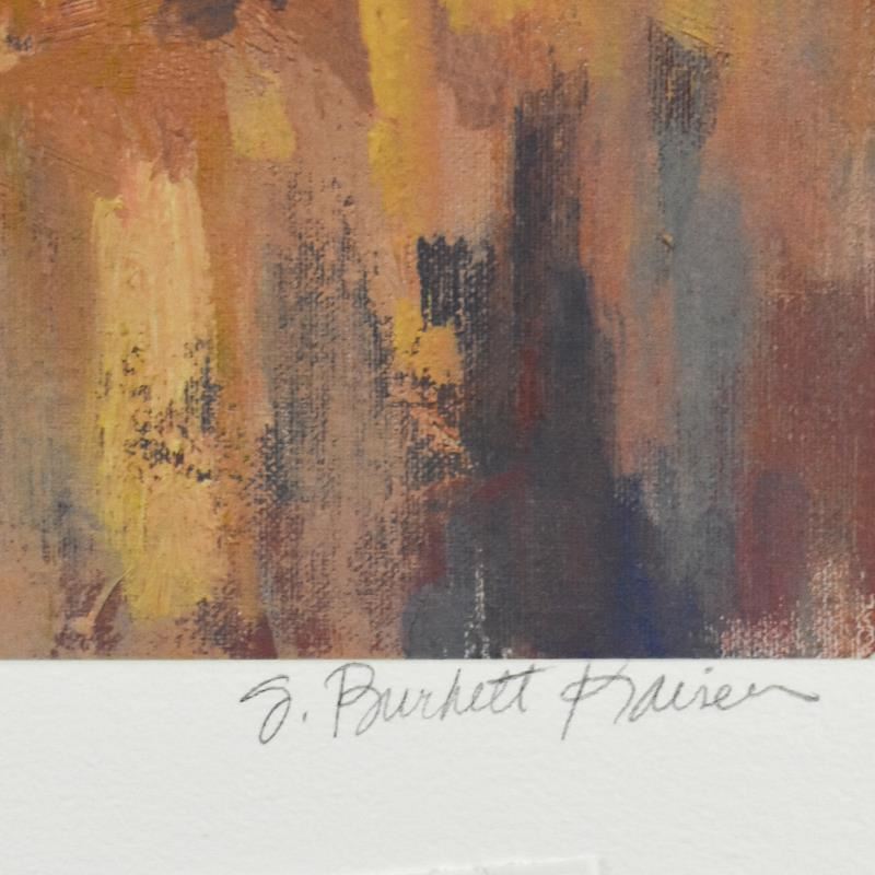 "Morning Petals" is a limited edition giclee on paper by S. Burkett Kaiser, numbered and hand signed by the artist. Includes Letter of Authenticity. Measures approx. 29" x 29" (border), 24" x 24" (image).