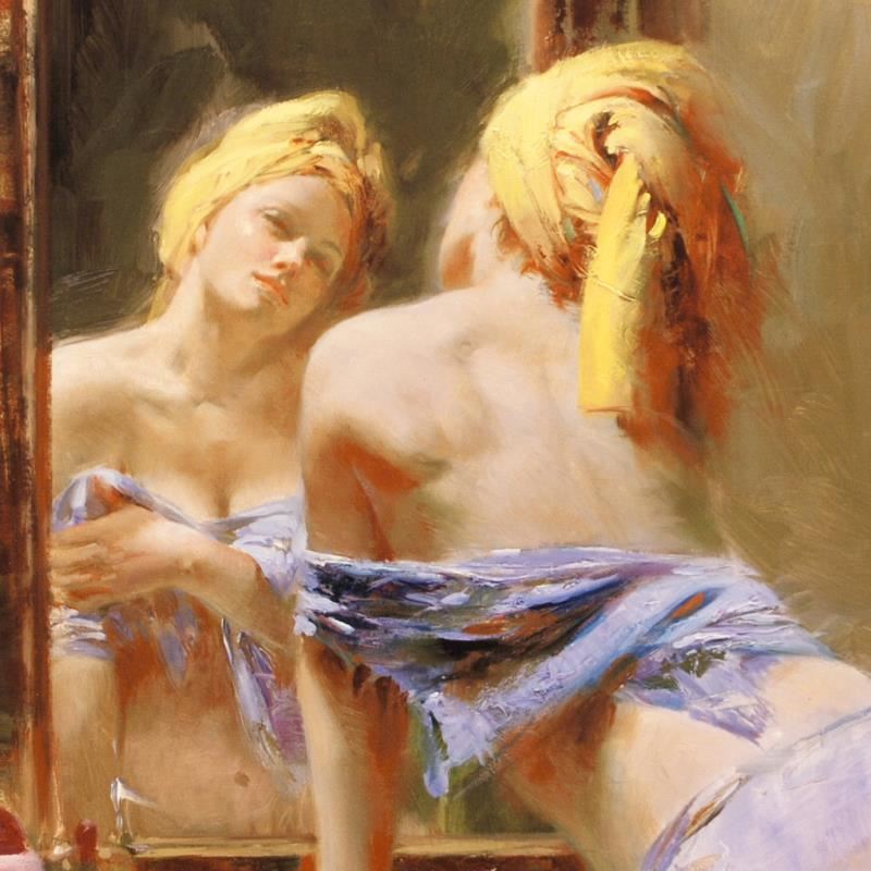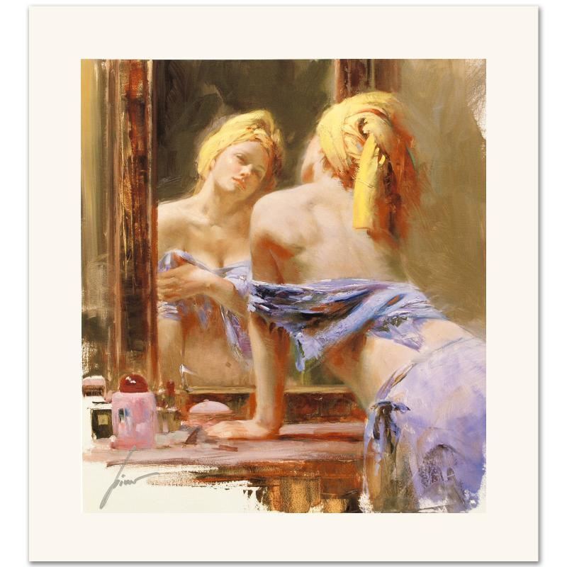 "Morning Reflections" is a limited edition giclee on canvas by Pino (1931-2010), numbered and hand signed by the artist. Includes Certificate of Authenticity. Measures approx. 16" x 12" (image).