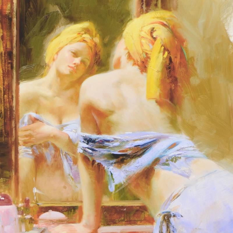 Morning Reflections by Pino (1939-2010). "Morning Reflections" is a limited edition giclee on paper by Pino (1939-2010). The piece comes numbered and is hand signed by the artist. Includes Certificate of Authenticity. Measures approximately 16 x 15" (image).