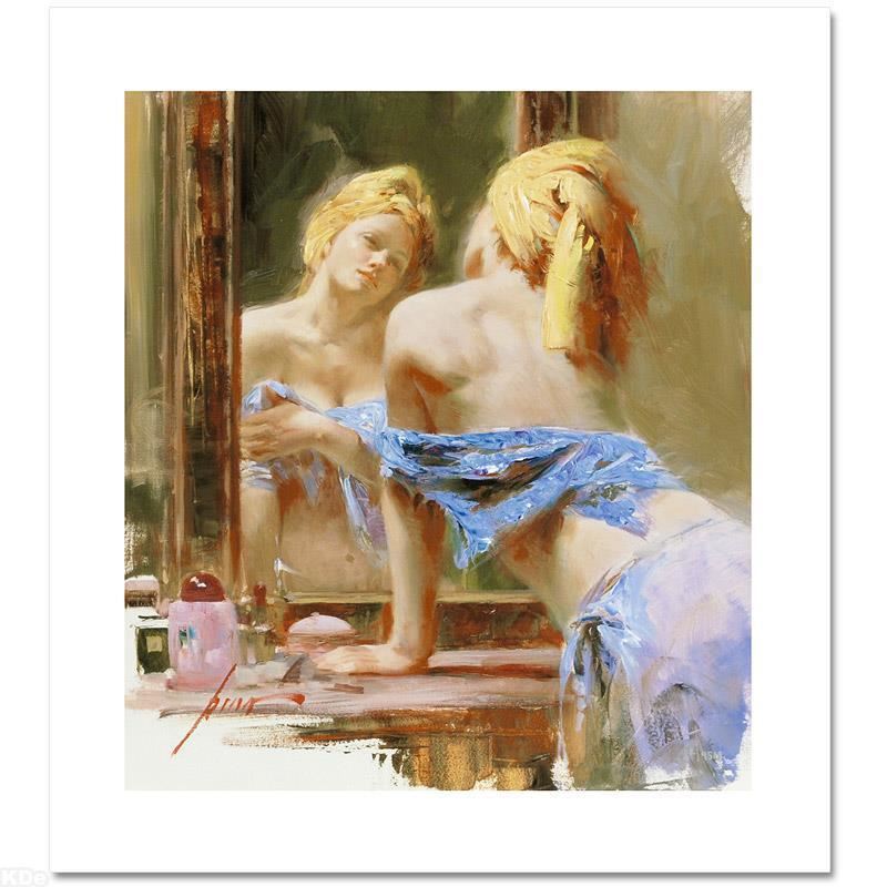 "Morning Reflections" is a limited edition giclee on canvas by Pino (1939-2010) numbered and hand signed by the artist. Includes Certificate of Authenticity. Measures approximately 12" x 16".