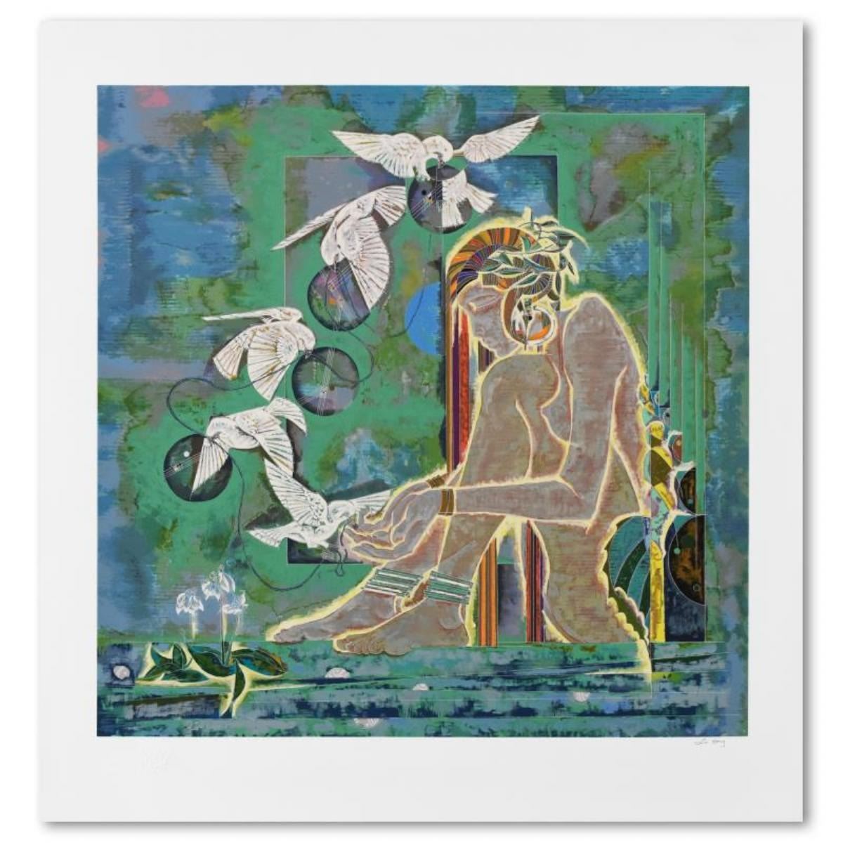 "Morning Sonata" is a limited edition serigraph on paper by Lu Hong, numbered and hand signed by the artist. Includes Letter of Authenticity. Measures approx. 34" x 36" (with border), 29" x 29" (image).