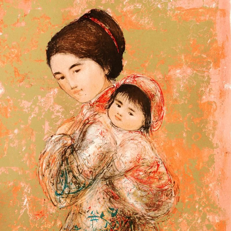 "Morning Stroll" is a limited edition lithograph on paper, numbered and hand signed by Edna Hibel. Includes Certificate of Authenticity! Measures approx. 21.5" x 31.5" (with border), 17" x 25" (image).