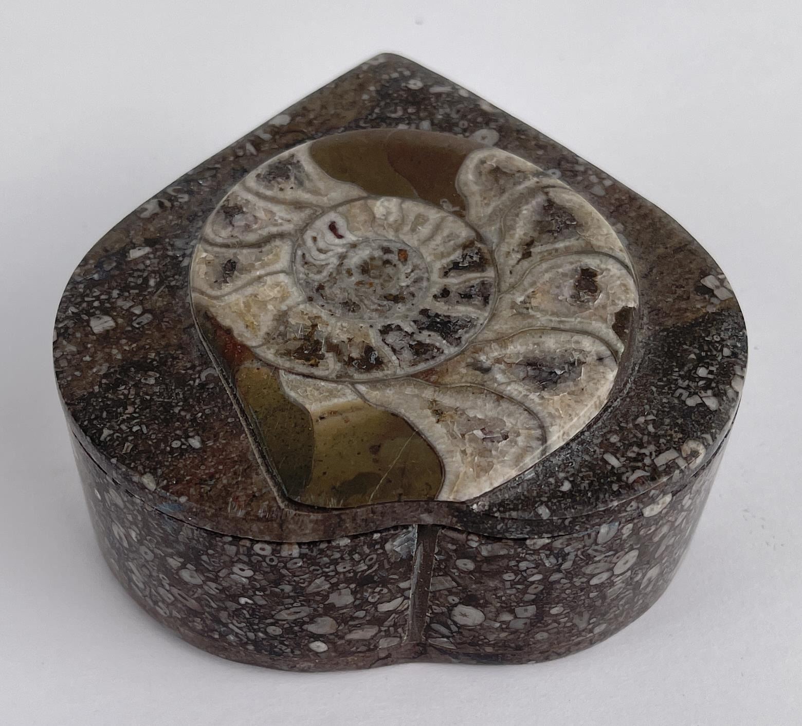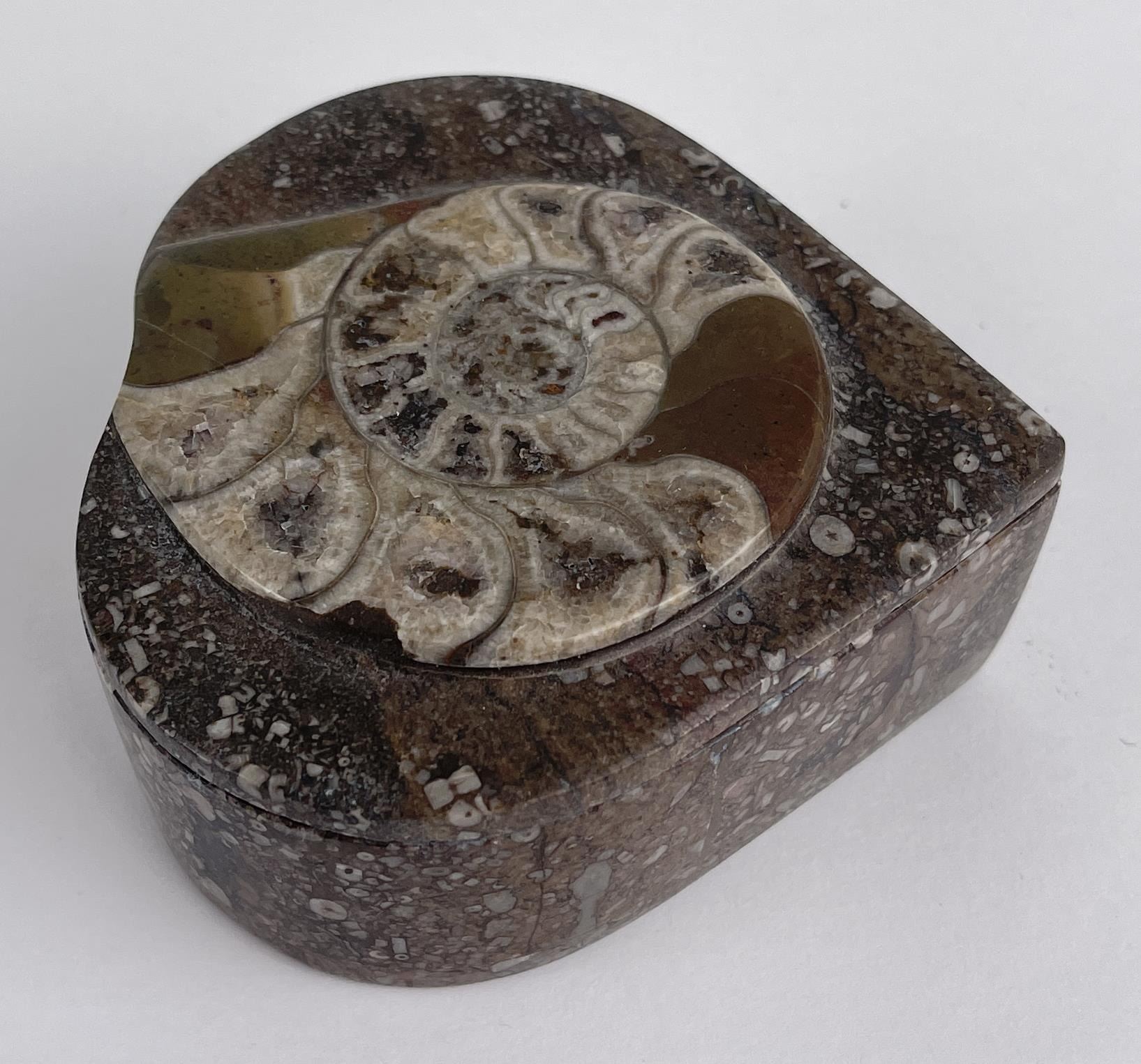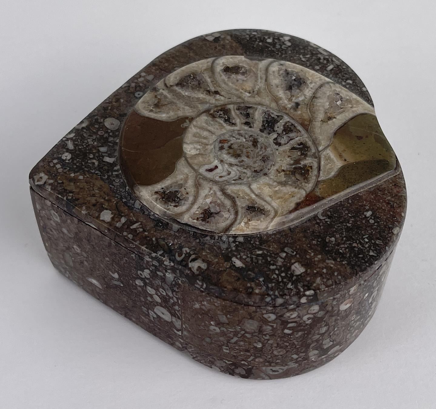 Very nice box. Made from fossilized material. 1.5" tall, 3.75" wide.