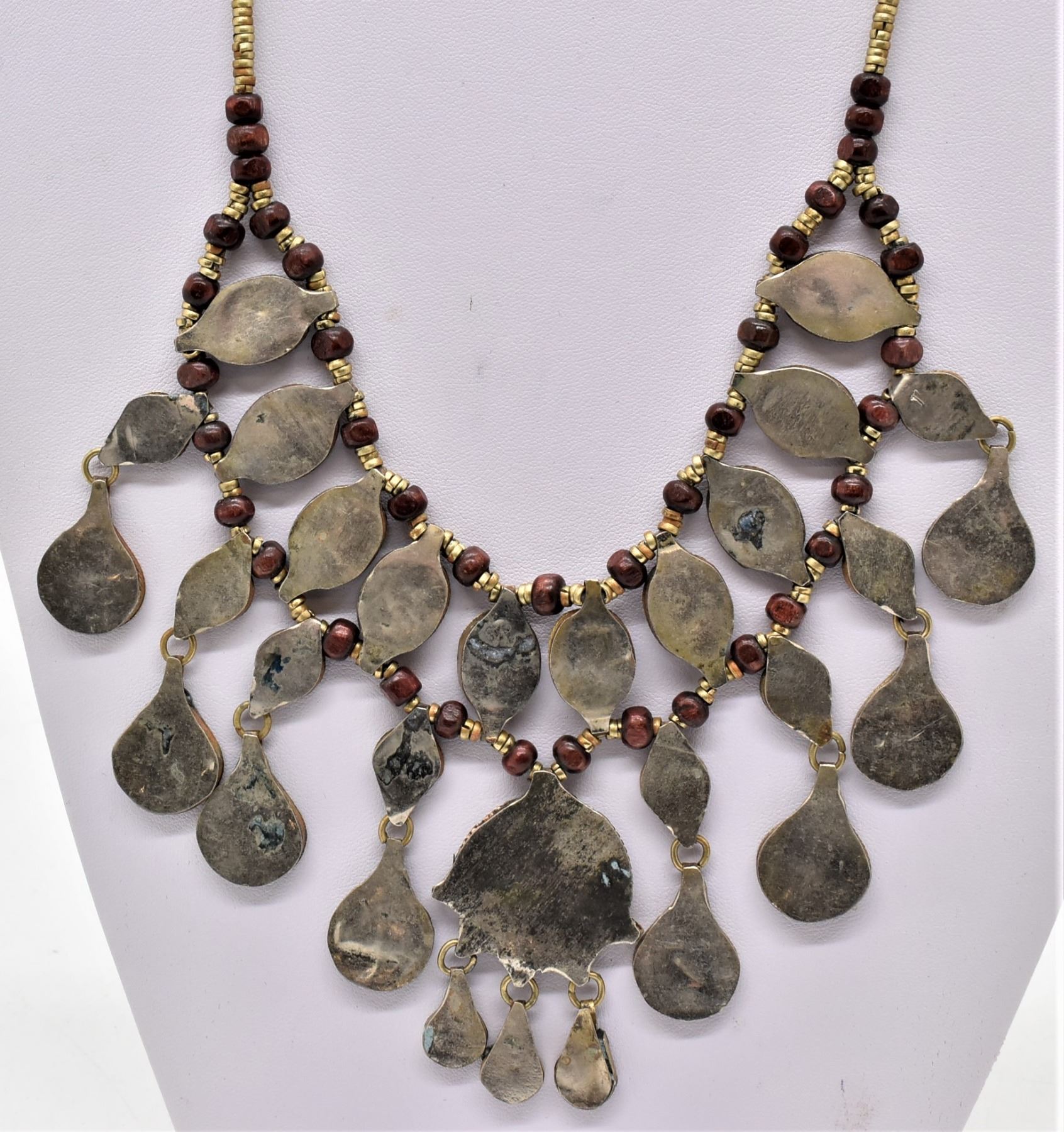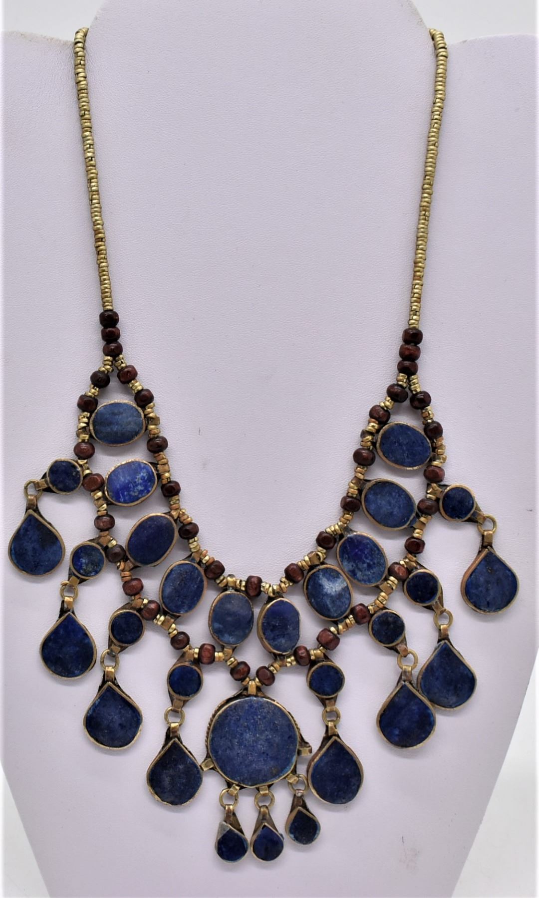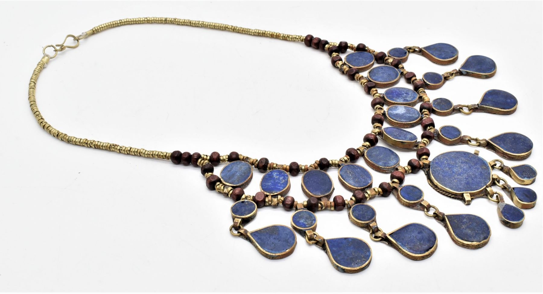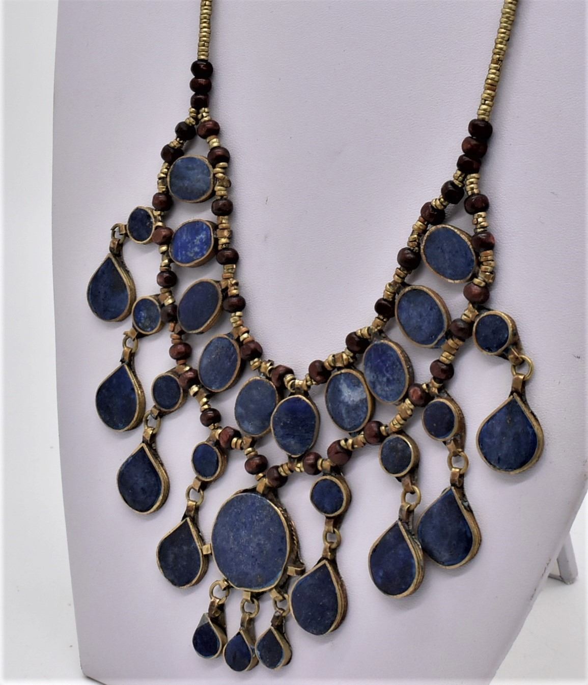 Moroccan Brass and Lapis Multi Pendant Necklace, measures 20''L end to end
