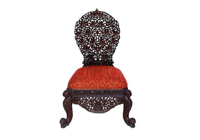 Moroccan Carved Chair Ottoman - Authentic, inlaid pieces were created to coordinate with exotic themes to provide a one-of-a-kind experience. Rich, Moroccan, Exotic, Lush. Dimensions: 1'11. Rental price associated with this item: $95.00.