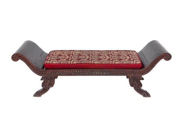 Moroccan Sleigh Bench - Authentic, inlaid pieces were created to coordinate with exotic themes to provide a one-of-a-kind experience. Rich, Moroccan, Exotic, Lush. Dimensions: 5'5'' W x 1'8'' D x 1'8'' H. Rental price associated with this item: $175.00.