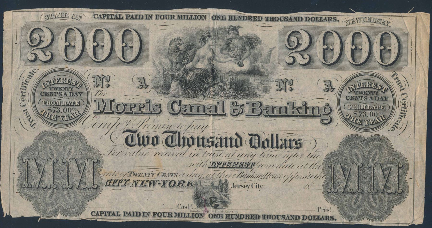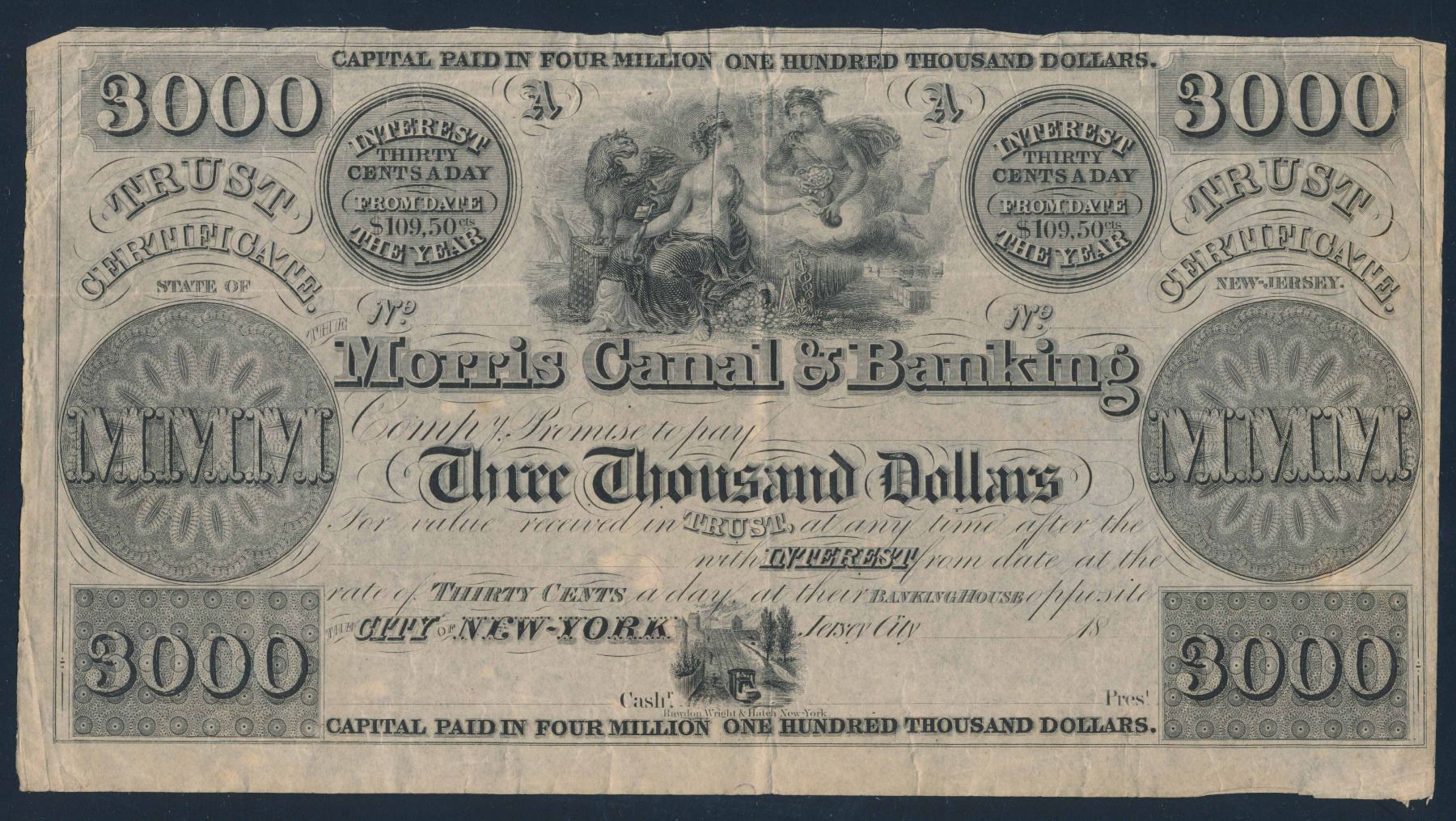 Morris Canal & Banking Trust Certificate Remainders, $2000 and $3000 Lot of Two