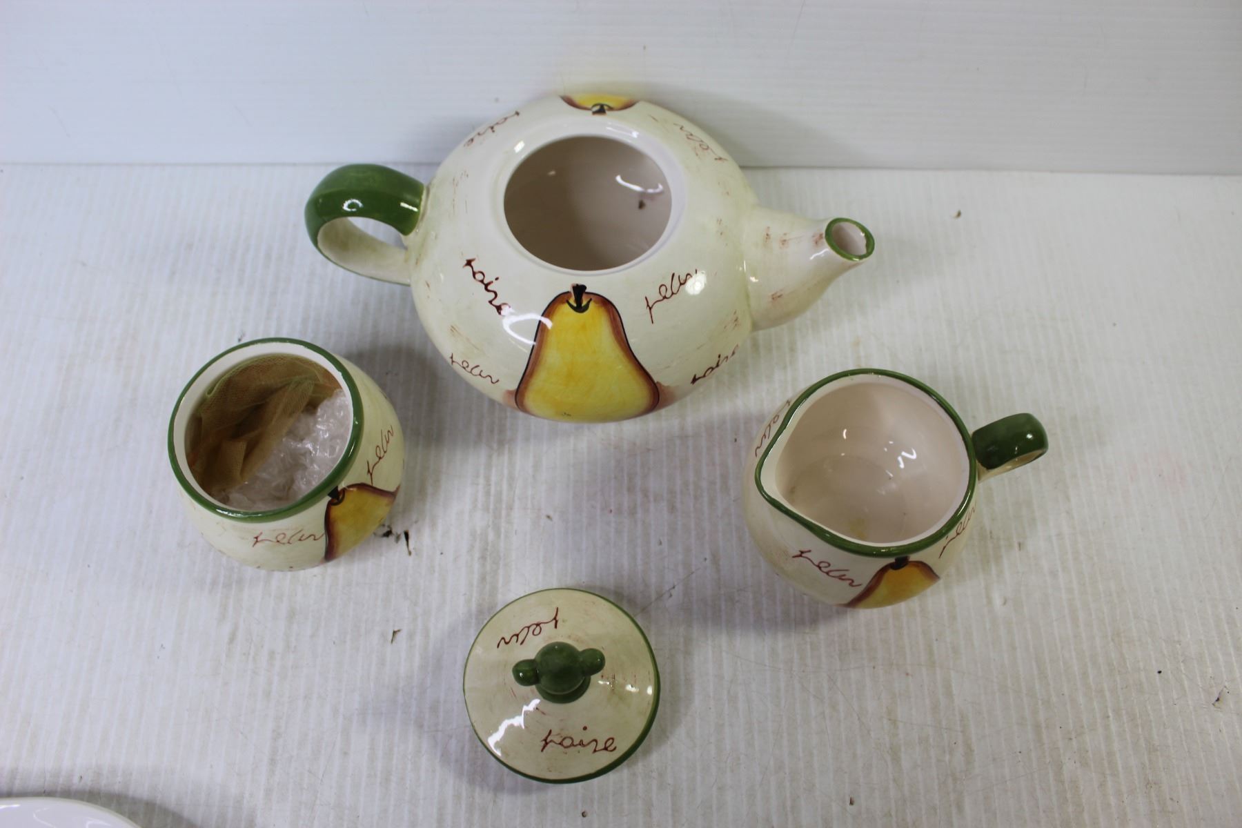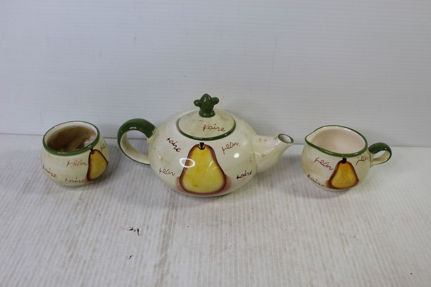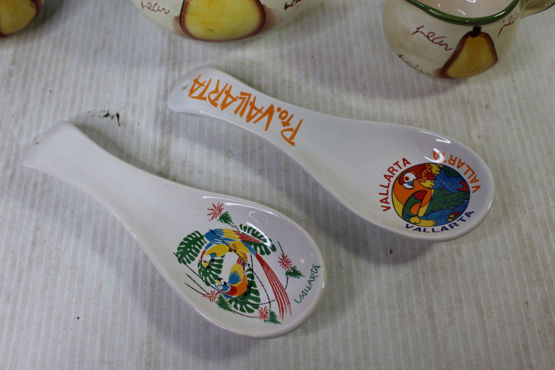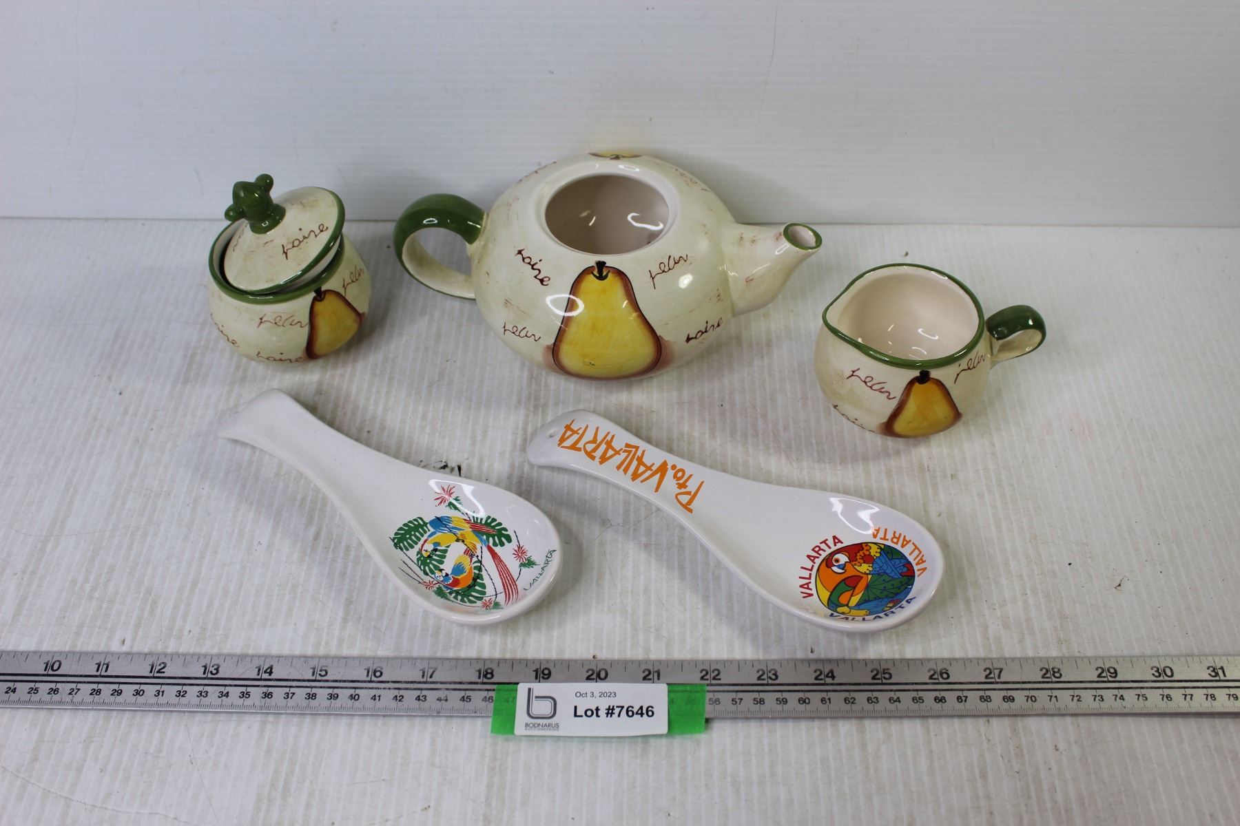 Morris Ceramic Tea Set (lid missing) - (2) Ceramic Souvenir Spoons