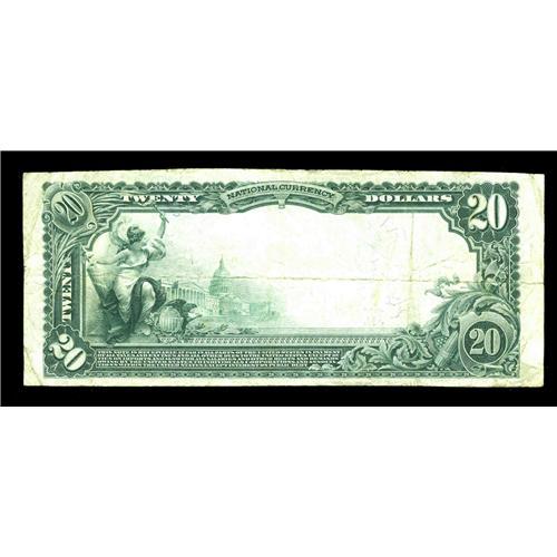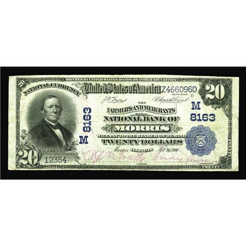 <B>Morris, IL</B></I> - $20 1902 Plain Back Fr. 651 <B>The Farmers & Merchants NB</B></I> Ch. # (M)8163<BR>This Grundy County institution closed its doors forever in 1931. This example has legible pink stamped signatures. <B>Fine-Very Fine.</B></I>