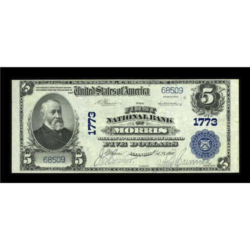 <B>Morris, IL</B></I> - $5 1902 Plain Back Fr. 601 <B>The First NB</B></I> Ch. # 1773<BR>Stamped signatures offer excellent contrast on the bright white surfaces of this <B>Extremely Fine-About Uncirculated</B></I> note.<BR><I>From The Lincoln Collection</B></I><BR><BR><b>Shipping:</b> Coins & Currency (<a target="_blank" href="http://www.heritageauctions.com/common/shipping.php">view shipping information</a>)