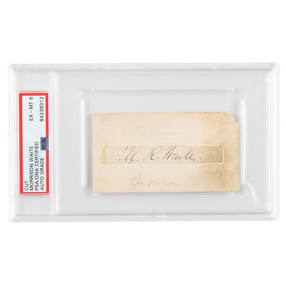 Ink signature, "M. R. Waite,†on an off-white slip affixed to a 3.75 x 2 card. In very good to fine condition, with soiling to the right side. Encapsulated in a PSA/DNA authentication holder, grading the autograph as "EX-MT 6.â€