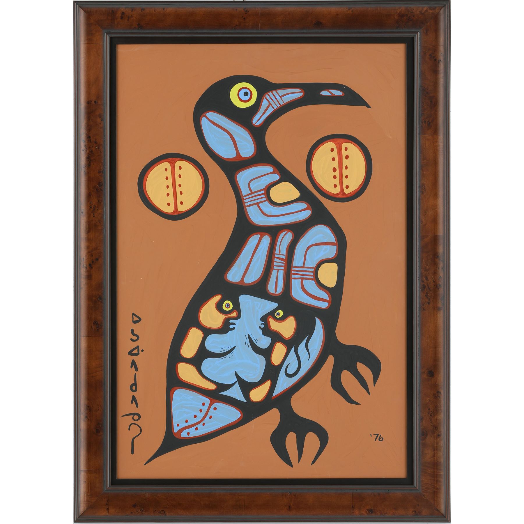 Morrisseau "Mystery of Life" original acrylic on board painting, circa 1976. This piece has been professionally custom framed with an inner frame liner. This piece has been certified authentic and genuine, and has been appraised at $23,000 CAN.Image- 36" x 24". Frame- 43" x 31".