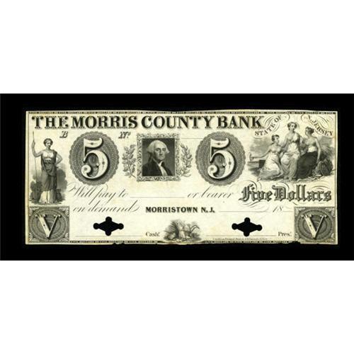 <B>Morristown, NJ- The Morris County Bank</B></I> $5 G30 Wait 1232 Proof<BR> A common enough note as a remainder, but very scarce as a Proof. <B>Uncirculated,</B></I> with 2 POC. <BR><BR><b>Shipping:</b> Coins & Currency (<a target="_blank" href="http://www.heritageauctions.com/common/shipping.php">view shipping information</a>)