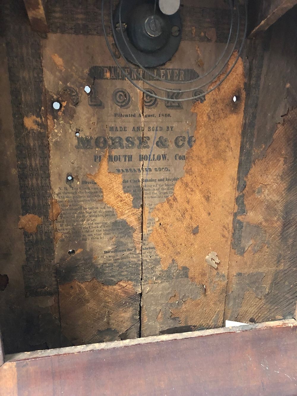 Morse and Co. OG Mantel Clock, Plymouth Hollow, CT, all original. Was in running condition at the estate. From the Chatham, Ma, Cape Cod Collection.