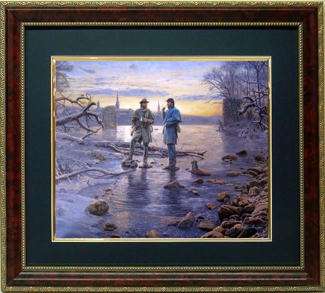 Here is a print vividly portraying an actual encounter that took place during the Civil War in Rappahannock River, Virginia., December 25, 1862. Artist: Mort Kunstler Title: "My Friend, the Enemy" Medium: Print on acid free canvas textured paper Image Si