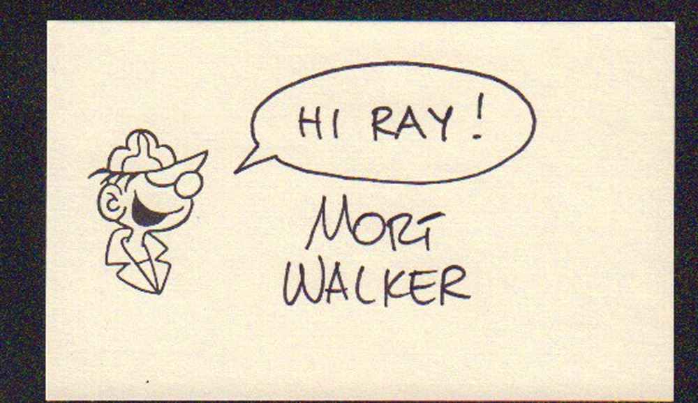 Signed index card featuring a sketch of Andy Capp saying "Hi Ray!" and signed by artist Mort Walker. All items come with a certificate of authenticity good for the life of the piece.