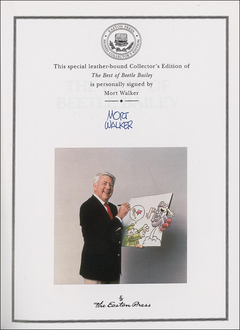 Signed book: The Best of Beetle Bailey. Limited special edition. Connecticut: Easton Press, 2005. Leatherbound hardcover, 8.5 x 11.25. Signed on a special prefatory page in blue felt tip by Walker. In very fine condition. RRAuction COA.