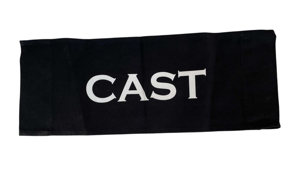 Original chairback used in the production of the action comedy film 'Mortdecai' (2015), where Juggling angry Russians, the British Mi5, and an international terrorist, debonair art dealer and part-time rogue Charlie Mortdecai races to recover a stolen painting rumored to contain a code that leads to lost gold.