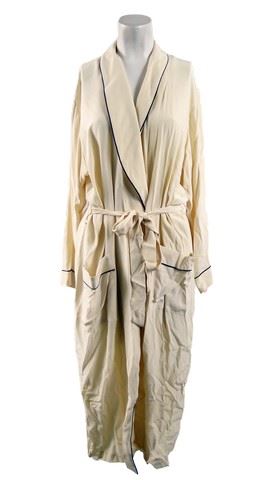 Johanna (Gwyneth Paltrow) screen worn, hero, cream silk with blue lining robe with self belt.