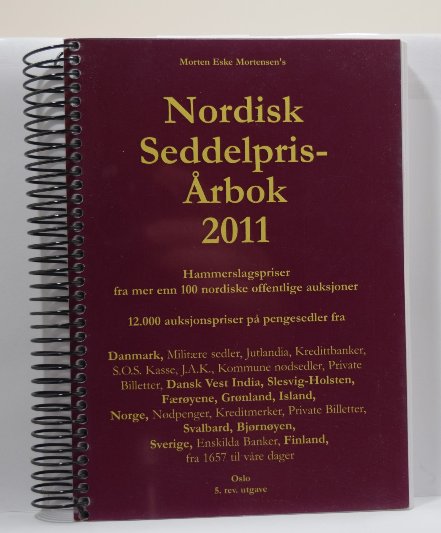 Mortensen, Morten Eske (ed.). NORDISK SEDDELPRIS-ÅRBOG 2011. Morten Eske Mortensen. 2011. 12mo, 377 pages; Softcover; Spiral binding; Limited edition 5 of 100 copies. Subject: Paper Money - Norway