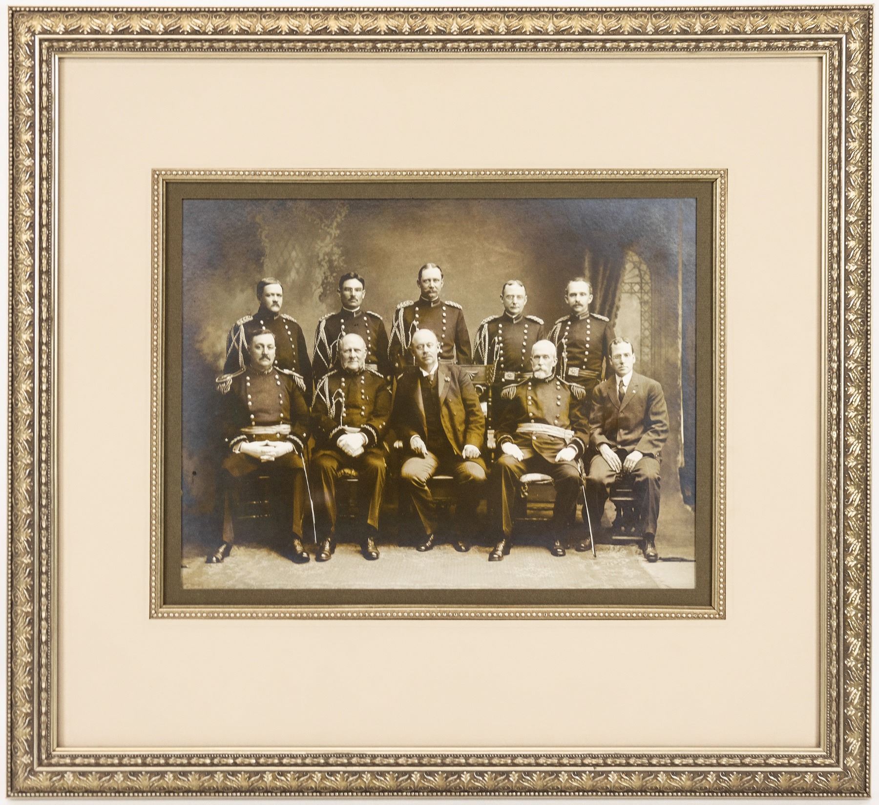 1) Framed Society of the Sons of the American Revolution member certificate, 1915, 28x33". MR Proctor Jr. graduate degree. 2) Governor Fletcher D Proctor and staff framed photo, 20 x 22". 3) Framed print of President Harrison and Proctor 23.5x25.5". 4) Framed Senator Redfield Proctor fact sheet, 18x15". Mortimer Robinson Proctor (1889 -1968), was an American politician who served as the 62nd lieutenant governor of Vermont from 1941 to 1945, and as the 66th governor of Vermont from 1945 to 1947. Proctor was the grandson of Redfield Proctor, the son of Fletcher D. Proctor, and the nephew of Redfield Proctor Jr., who all previously served as Governor of Vermont. He had one son, Mortimer Robinson Proctor Jr. (1916-1977)." from Wikipedia