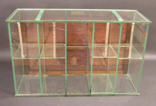 Morton showcase, Morsho Cases, Washington, OH. 24"x15"x9", All glass showcase, 2 wooden doors. Very unusual.