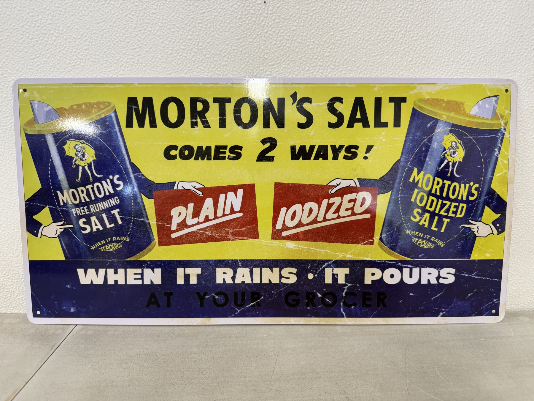 Morton's Salt Metal Advertising Sign - 19" X 10" - Excellent Condition