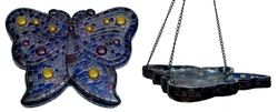 Mosaic Butterfly Birdfeeder/Wall Plaque - Can be hung on the wall or in the window for a suncatcher. Use attached chains to hang as a bird feeder or birdbath. Made of sturdy weather resistant acrylic for years of beauty and use. Measures 14" x 10.5".