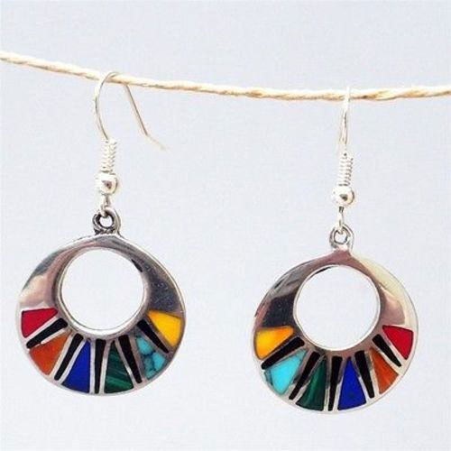Mosaic Flat Hoop Earrings - Artisana **|**|** Earrings composed of natural stones #MJSE07_Mosaic_229009
