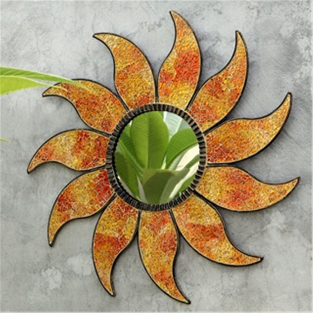 Mosaic Glass Sun Mirror - 20" X 20" X 2" - Iron, Glass & Sheet Metal