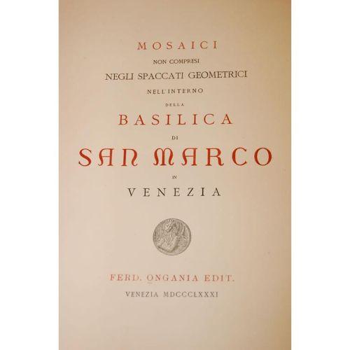 Mosaici Non Compresi Negli Soaccati Geometrici Nell' Interno Della Basilica Di San Marco in Venezia - 2 Parts in 1 Portfolio. Venezia: Ferd. Ongania, Elephant Folio - over 15" - 23" tall. Ex-Library. In Good Condition. 1881-1885. 107 b/w engraved plates, unbound as issued, with stiff wrapper, in original portfolio with ties. MOSAICS IN THE BASILICA OF SAN MARCO.