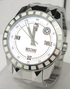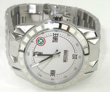 Brand New Moschino Stainless Steel Watch. The total watch's weight is 174.4 grams. The size of watch head: 43 x 43 mm and 11 mm thick. The length of the watch is 9.75". Japan Movement. Water Resistant. Chain is 22 mm wide