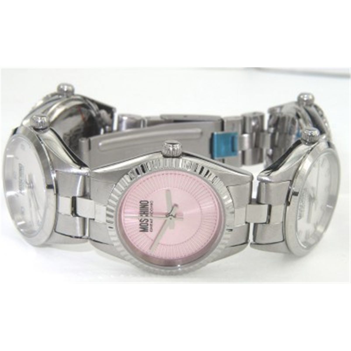 Brand New Moschino Stainless Steel 5 Head Watch. The total watch's weight is 89.2 grams. The size of each watch head: 25 x 25 mm and 7 mm thick. The length of the watch is 9". Japan Movement. Water Resistant. Chain is 14 mm wide