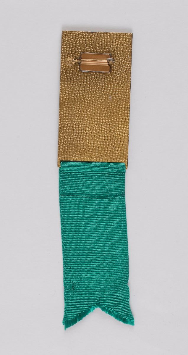 Official badge for the 83rd International Olympic Committee session in Moscow, measuring 1.25 x 2.5 with a 3? long green ribbon suspended below, featuring Olympic rings at the top and a Moscow image in the center, reading, “83 I.O.C. Session, Moscow, 1980,” and engraved at the bottom, “C. N. O.” In fine condition. At this session, Juan Antonio Samaranch was elected as president of the IOC.