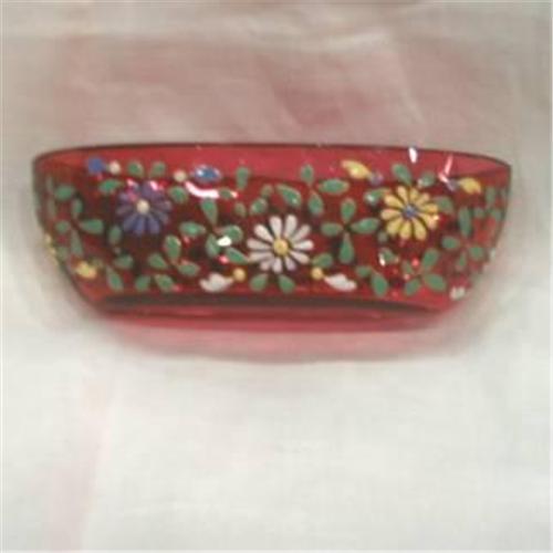 <table width="100%" border="0" cellspacing="0" cellpadding="4"><tr><td><em> </em></td></tr><tr> <td width="100%"> Moser Cranberry Pin Dish with floral enamel. Excelent condition, 1 1/2" tall x 5" long. 1858-1924. </td></tr><tr> <td> </td></tr><tr> <td>Reference #: 4x61x22</td></tr><tr><td>Condition:Excelent</td></tr><tr><td>Year:1858-1924</td></tr><tr><td>Country:Austria</td></tr><tr><td>Maker:Moser</td></tr><tr><td>Height:1.5</td></tr><tr><td>Width:5</td></tr><tr><td>Title:Moser Pin Dish</td></tr><tr><td>Style: </td></tr><tr><td>Materials:Glass</td></tr><tr><td>Type:floral</td></tr><tr><td>Location:Marshall, Mi</td></tr></table>