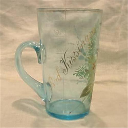 Moser Souvenir Measuring Mug. 4 1/2". "Bad Kissingen", with enameled floral decoration.